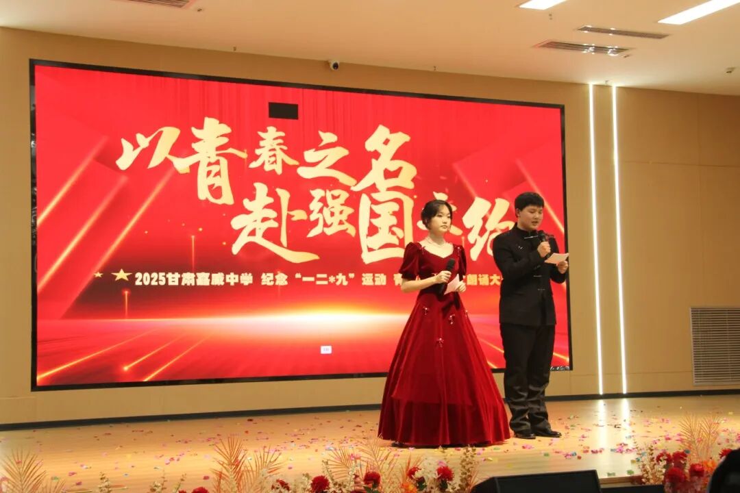 为传承 “一二九” 运动的爱国精神,厚植青年学子的家国情怀,12 月 8 日 ,甘肃嘉威中学纪念 “一二九” 运动青春爱国诗文朗诵大赛在学术报告厅隆重举行。副校长丁玲、陈连儒、段永平、丁瑶,党总支副书记王行高出席活动,与全体师生共同见证这场文化盛宴。