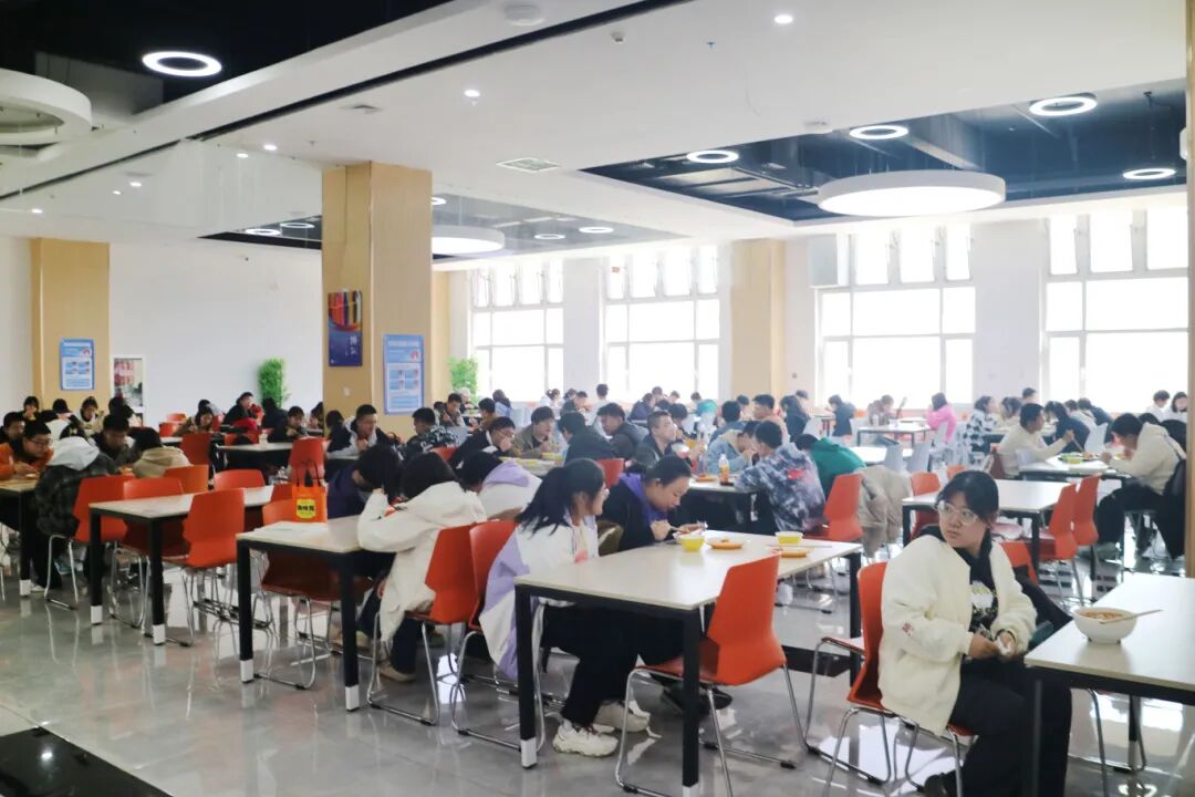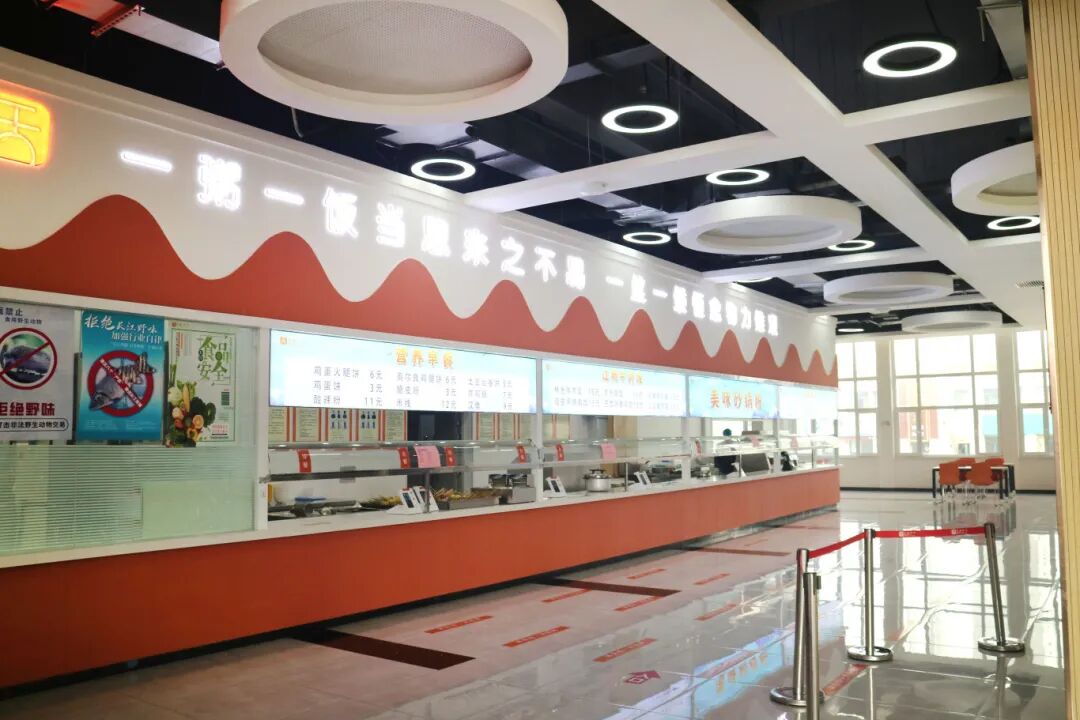 嘉威中学住宿环境整洁、食物健康美味。学生宿舍共11层,168间,可容纳900人。每间宿舍均有独立卫生间,24小时供热水,配备淋浴设施。配套配备上床下桌、上下床及书架、衣柜等设施。学校餐厅共两层,均为智慧餐厅,可同时容纳1200人就餐。学校食堂形成了餐品多样、智能取餐、食品安全、文明就餐的食堂文化。
