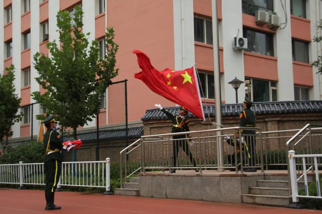 升国旗,奏唱国歌。在雄壮激昂的国歌声中,鲜艳的五星红旗冉冉升起,飘扬在学校上空。在国旗的见证下,同学们将在这里,挥洒汗水,见证荣光。