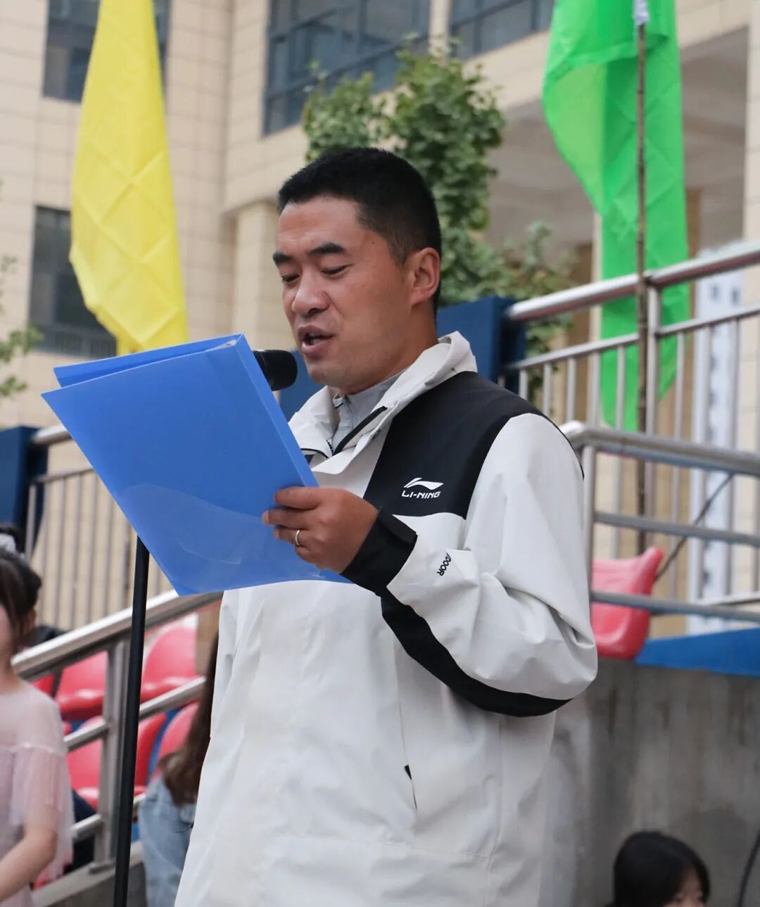 丁玲副校长致开幕词。丁校长表示,学校举办运动会,正是积极响应国家号召,践行“五育并举”教育理念的具体行动,旨在引导同学们在刻苦学习的同时,走向操场、增强体魄、健全人格,并激励同学们:体育的核心魅力在于永不言败的拼搏精神,人生的要旨并不在于凯旋,而在于奋斗。