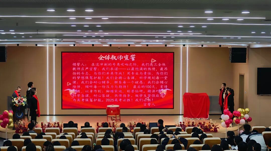 高三教师代表管艳霞老师深情寄语:“同学们,你们不是孤军奋战!全体老师将化身灯塔,为你们照亮前路;化作盾牌,为你们抵挡风雨。100天,我们定与你们并肩作战,共赴荣光!”台下掌声雷动,师生情谊化作奋进的力量。