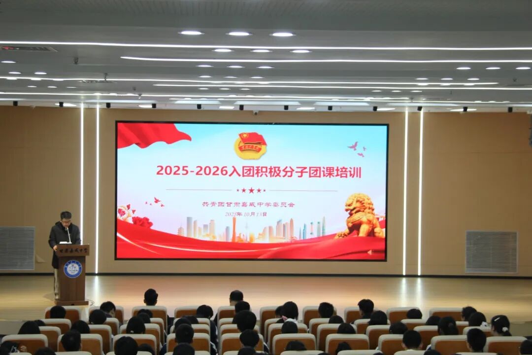 为进一步加强学校共青团组织建设,引导广大青年学生坚定理想信念、厚植家国情怀,为团组织注入新鲜血液,10月13日下午,甘肃嘉威中学在报告厅隆重举行 2025-2026 年入团积极分子培训班开班仪式暨第一期团课培训,学校副校长段永平、学生工作中心副主任陈刚出席本次会议。本次培训参训学员共458人,以专题讲座、观看教学视频、自学等形式强化了入团积极分子对共青团知识的学习,帮助他们进一步端正入团动机,坚定理想信念,从思想上真正入团。
